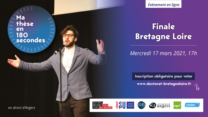 Regardez en direct sur Youtube la finale Bretagne – Pays de la Loire de Ma thèse en 180 secondes qui aura lieu mercredi 17 mars à 17h.