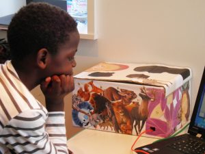 Ce projet visait plusieurs objectifs pédagogiques et notamment : – travailler la diction et l’oralité ; – lire ou raconter ; – utiliser un programme simple de programmation (scratch) afin d’activer les sons enregistrés ; – travailler en équipe et manuellement (pour la décoration de la boîte à lire).