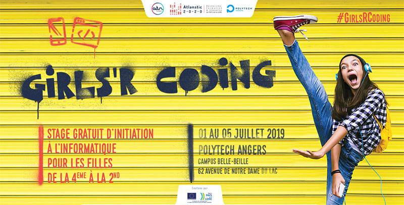 L’objectif de ce stage “Girls R Coding” est de faire découvrir la programmation informatique et les métiers du numérique à des jeunes filles de la 4ème à la 2nde scolarisées en Pays de La Loire. Ce stage est proposé par Atlanstic 2020 et ADN’Ouest et co-organisé avec Polytech Angers.