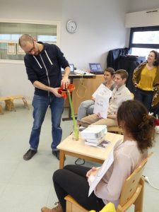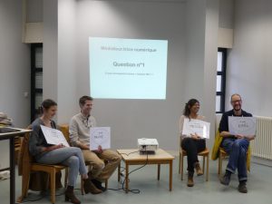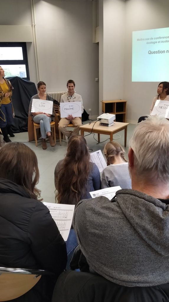 Mercredi 19 février, la bibliothèque de Monplaisir nous accueillait pour un Qui est qui. Médiateur numérique, chercheur en écotoxicologie, sélectionneur végétal, enseignant en chimie… Pendant une heure et demi, Karl, Lou, Maxime et Messika ont joué le jeu en tentant de relever des défis pour aider le public à deviner le métier de chacun.