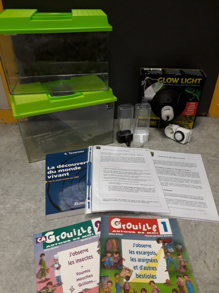 Cette mallette propose un module d’élevage multi-usages. Elle est composée de matériels d’expérimentation et de mise en place d’élevages polyvalents : il vous revient de choisir l’espèce que vous préférez, en fonction de vos objectifs pédagogiques (vers de farine, phasmes, grillons, pucerons, mouches, escargots, cloportes, mille-pattes, gendarmes…). La malle comporte également des documents d’accompagnement, trois ouvrages documentaires et une bibliographie non exhaustive. Elle permet d’aborder l’anatomie, le cycle de développement, le comportement et l’alimentation de ces différentes espèces au travers de l’observation et du suivi de l’élevage.