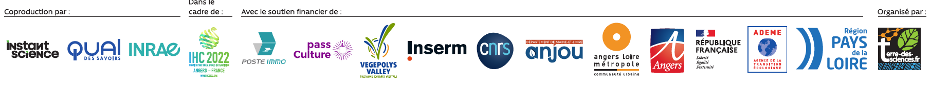 Cet événement s’intègre dans le cadre d’Angers Supernature et de l’IHC 2022 – 31e Congrès international de l’Horticulture. Il est également inscrit dans une dynamique régionale d’actions de culture scientifique sur le thème de l’alimentation.
